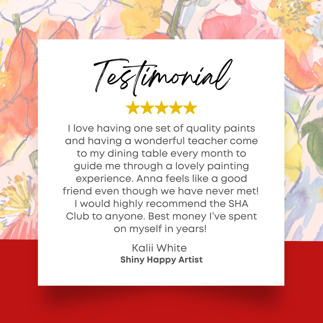 Whether you'd like to try a one-off class or workshop, OR you're keen to join the Shiny Happy Art Club for monthly inspiration and Art Friends, you are SO WELCOME here at Shiny Happy Art!