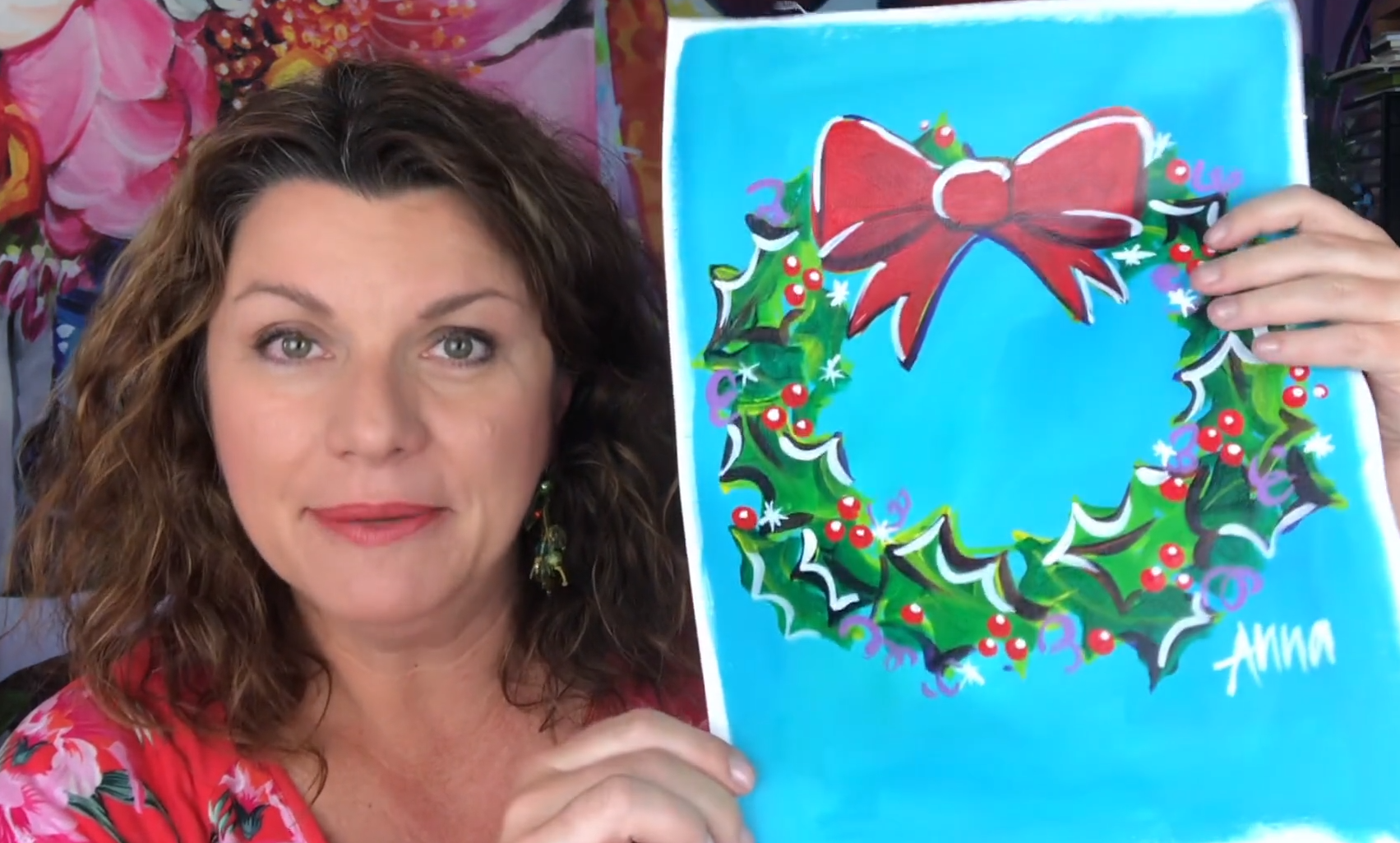 I've been painting versions of this wreath for many years. Different colours, patterned backgrounds, adding text and glitter and collage... I've done it all.