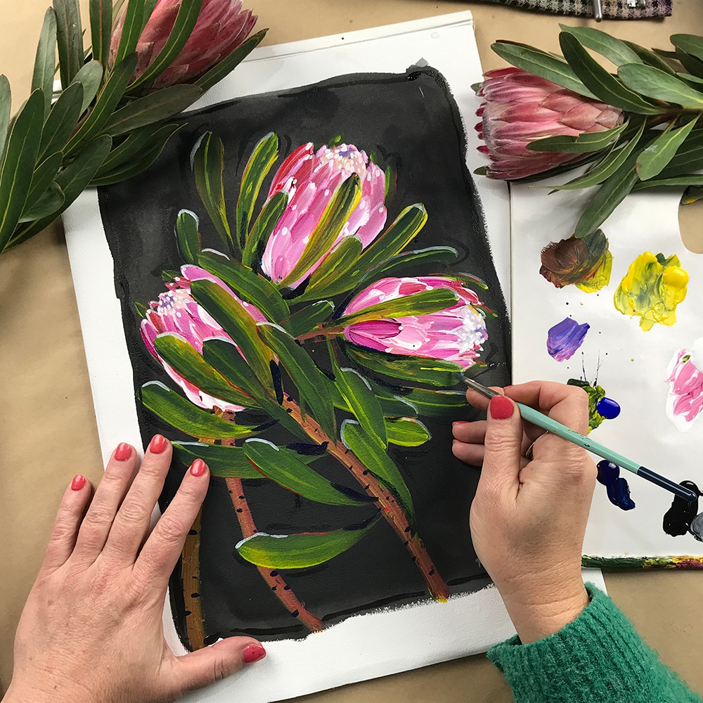 I look forward to welcoming you into my virtual studio to paint your own lovely Proteas!