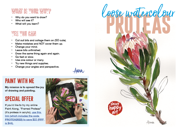 There's a lot going on in a protea, but it's a fabulous flower to learn 'watercolour-looseness'! Follow along with me while I show you two approaches to this gorgeous bloom and encourage you to discover your own drawing recipe.