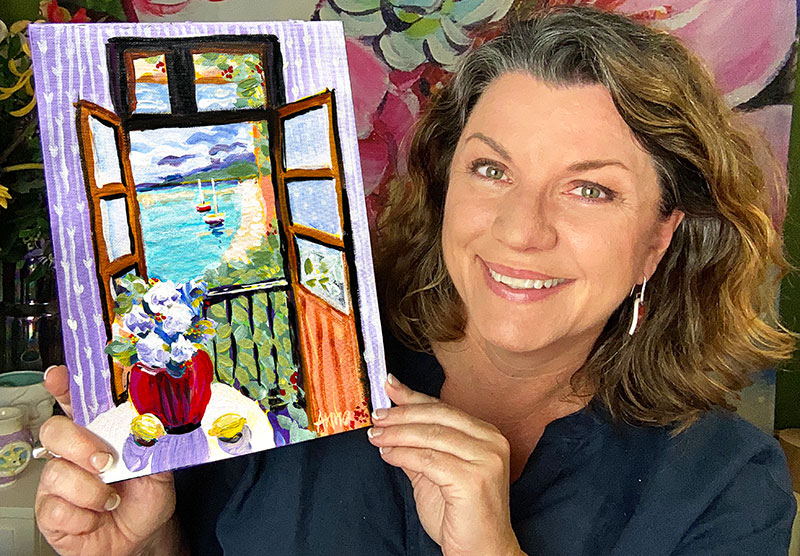 Let's learn from the Masters and use an open window to frame a mini seascape. We'll add texture and detail, and experiment with colours to draw the viewer into the scene. It's a fresh, multi-influenced take on a truly lovely, and adaptable, subject. Come, paint with me!