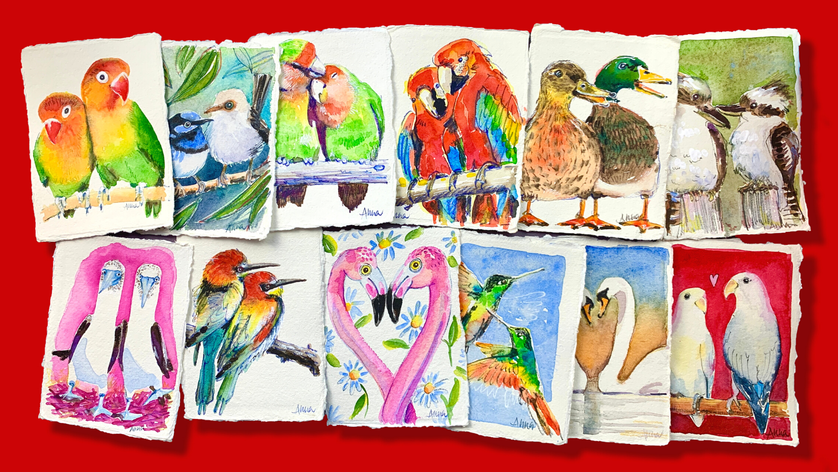 During the month of January 2022 (and a bit into February) I set myself the challenge of painting 12 small watercolour bird duos - lovebirds by design, on the most delicious Khadi handmade cotton paper. Follow along and join in!