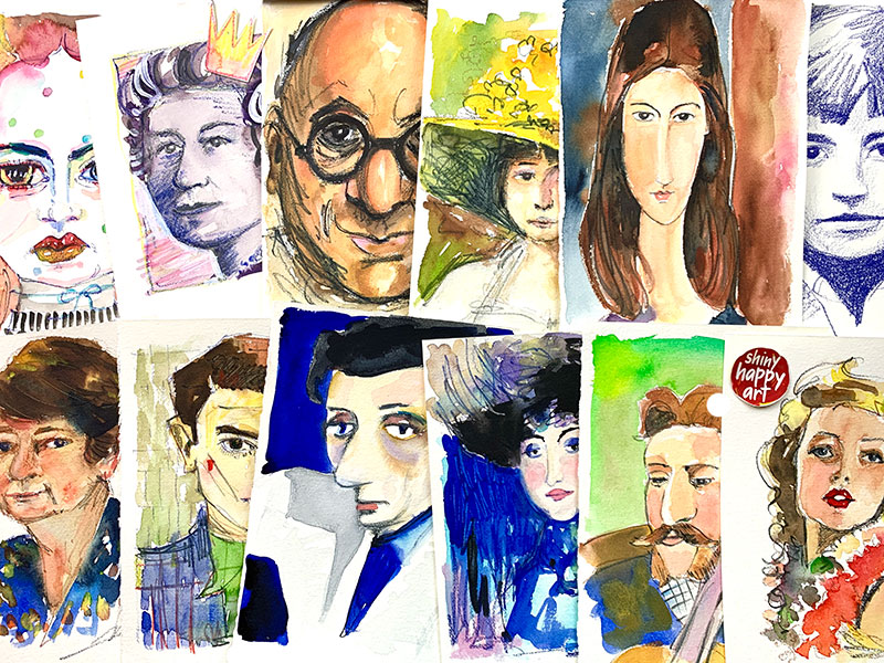 During the month of October 2021, I sketched 12 faces, influenced by a lot of famous artists, to build this interesting collection of faces in coloured pencil and watercolour.